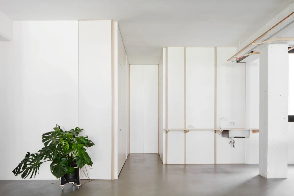 Para la reforma del mismo estudio de arquitectura Appareil, diseñamos los cerramientos de las zonas de almacenaje, cocina y baños.