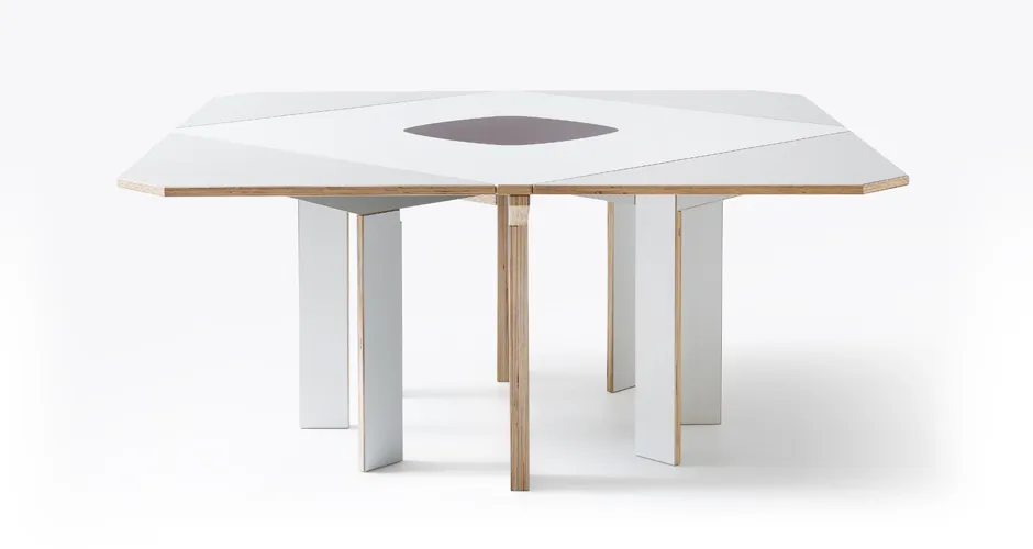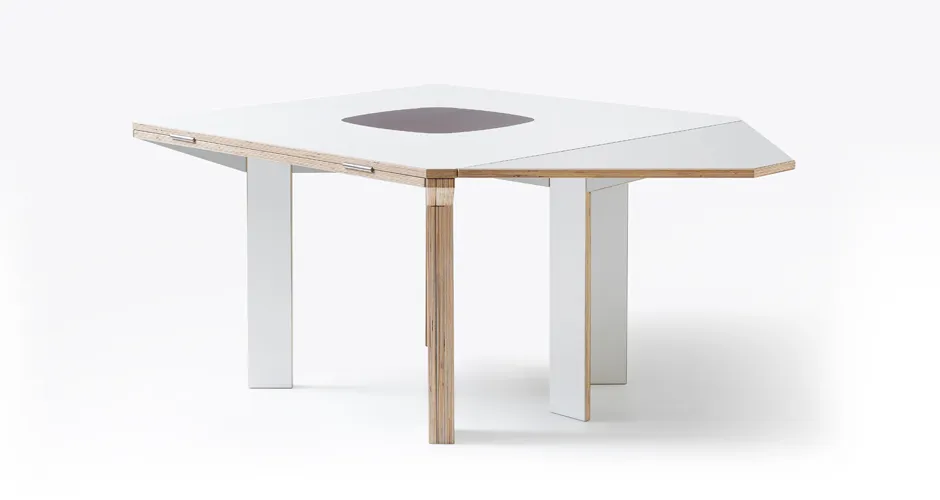 El sistema de apertura es sencillo e intuitivo. Consiste en cuatro piezas triangulares que se abaten o abren según necesidad.