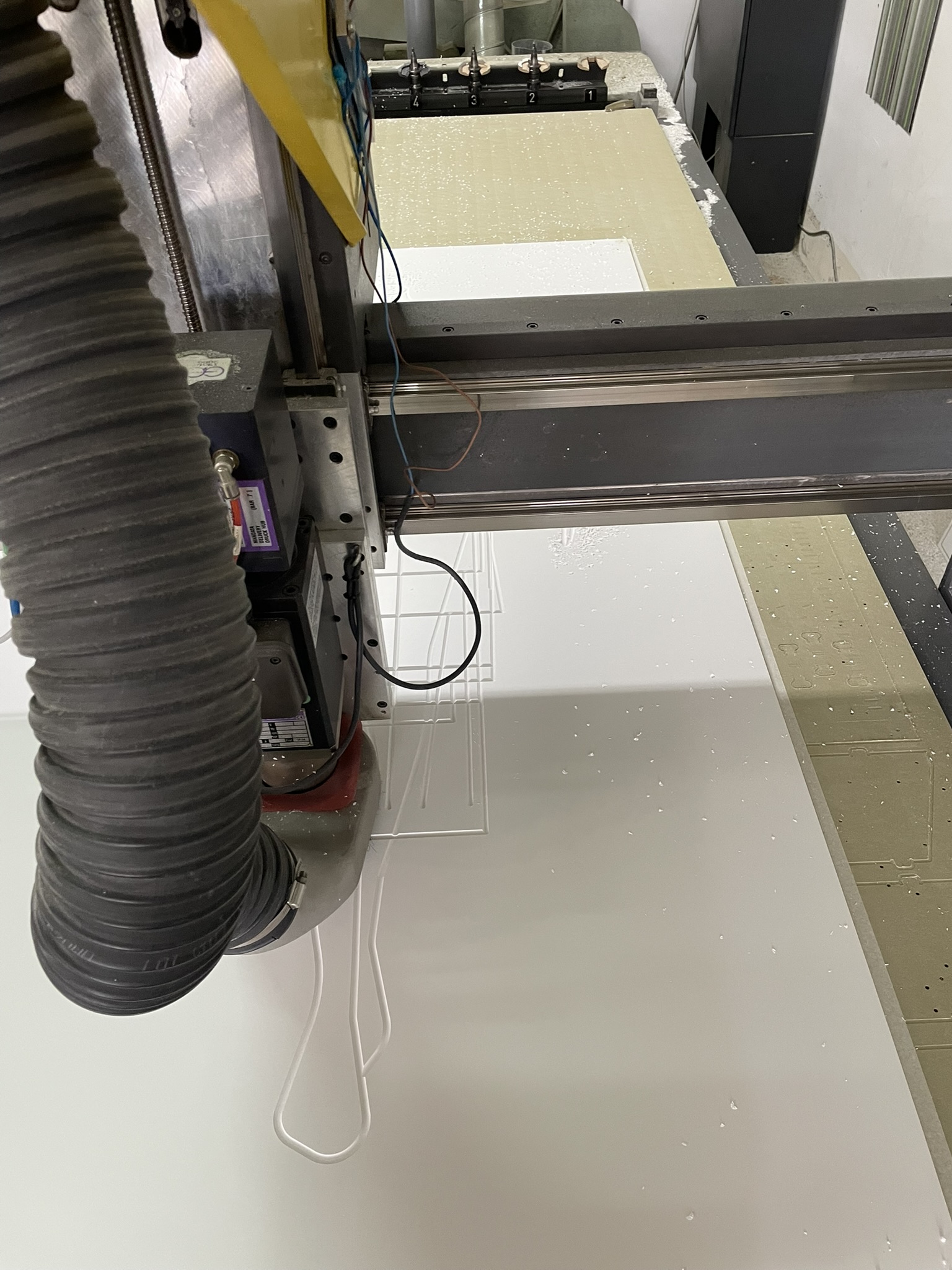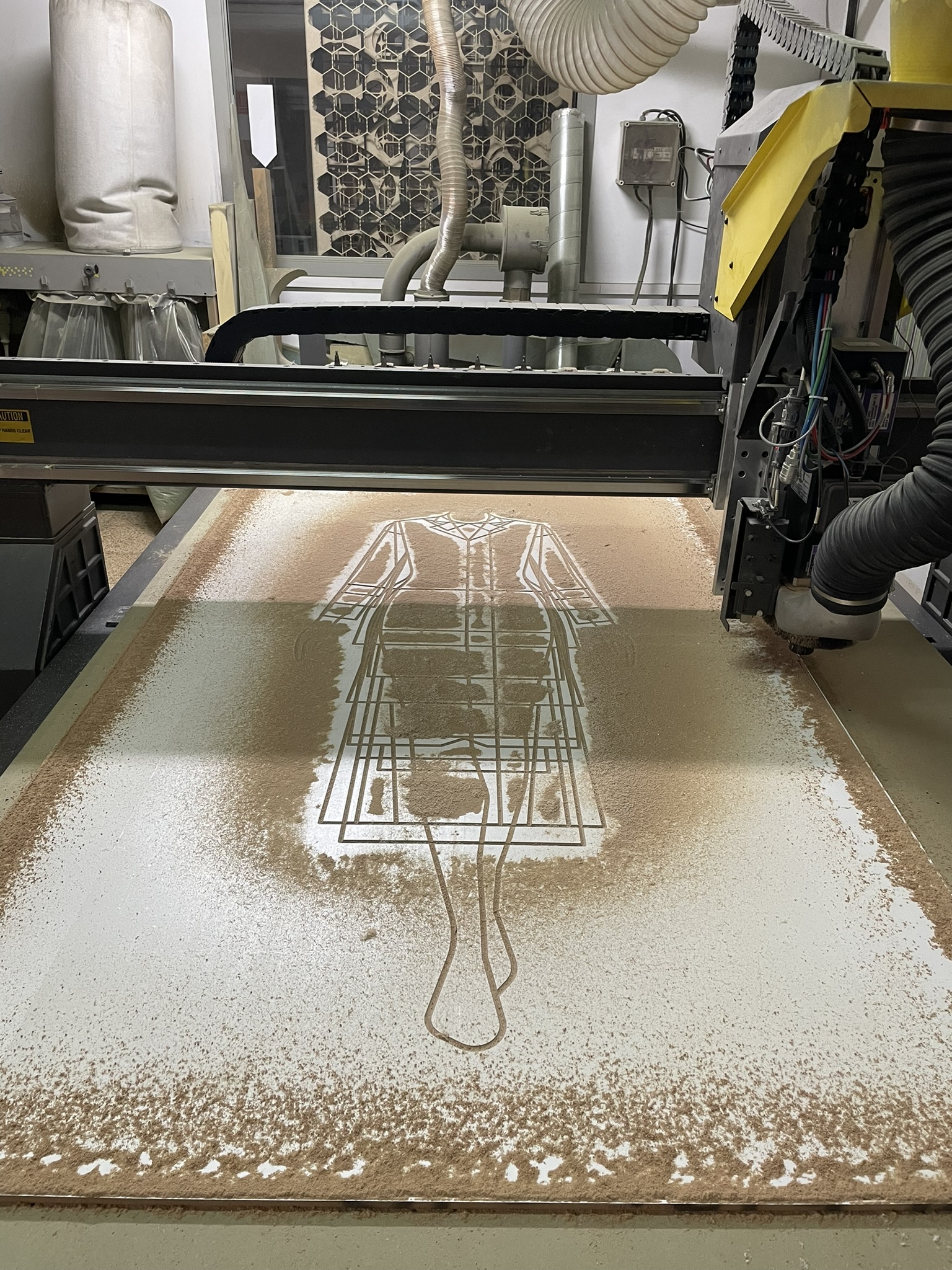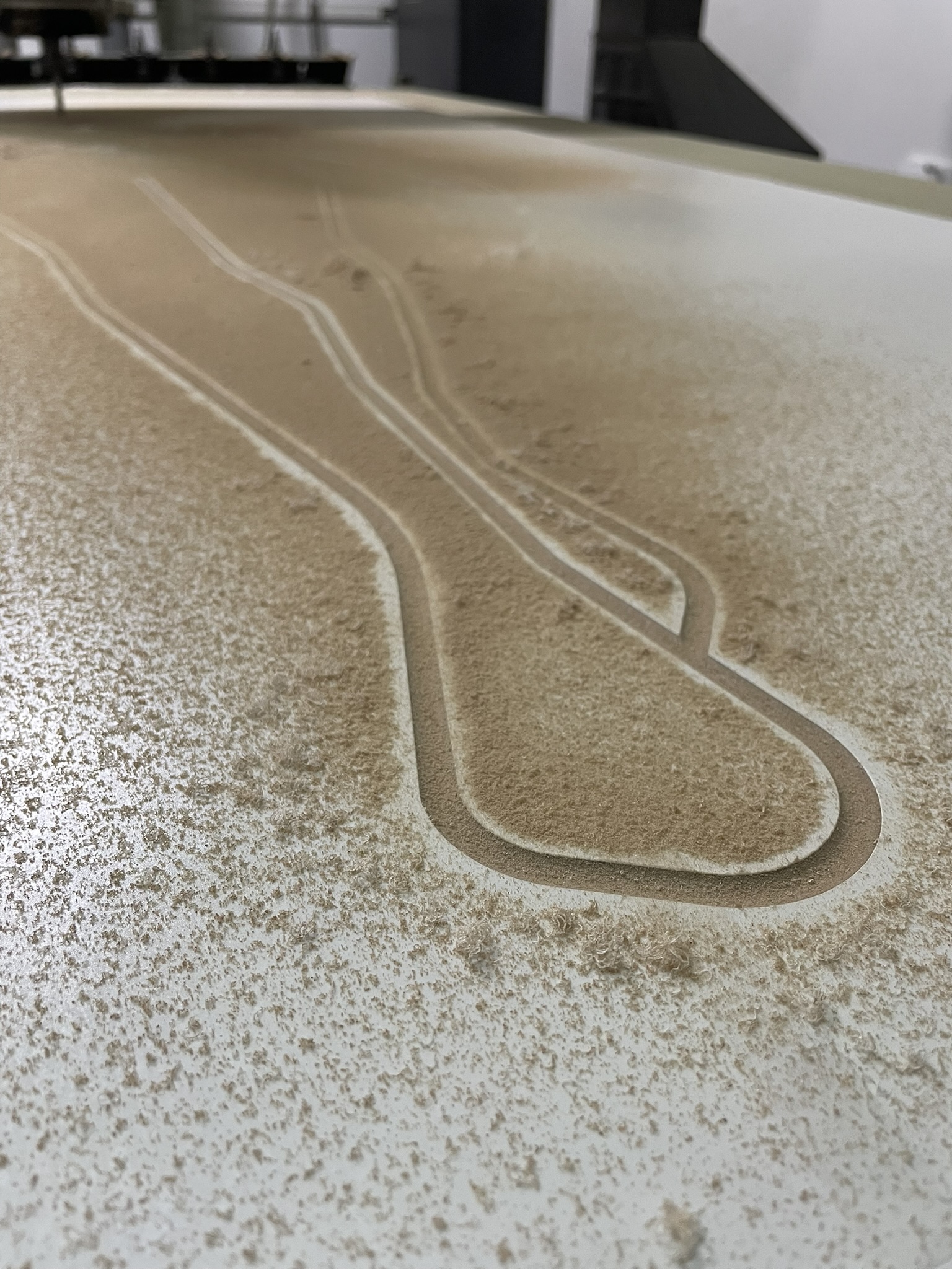 El desafío principal radicaba en crear una superficie que no solo recibiera la luz, sino que la potenciara, a la vez de que se lograra la sincronía perfecta entre proyección y soporte. Fabricamos dos paneles de gran formato fresados en Corian®, cuyas geometrías fueron calculadas minuciosamente para interactuar con los contenidos visuales de Onion Lab.