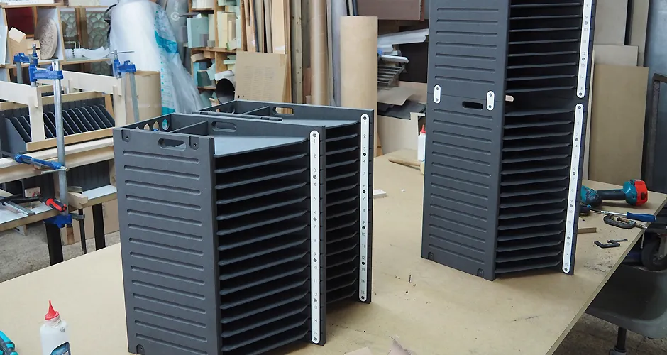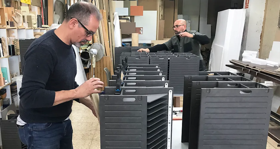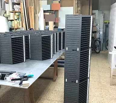 Finalmente, los racks se envían montados directamente a museos de Francia y del mundo desde nuestro taller en Barcelona, facilitando así su implementación y uso en diversas instituciones culturales.